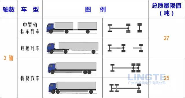 2、除驅(qū)動軸外,下文中的二軸組、三軸組以及半掛車和全掛車,每減少兩個輪胎,其總質(zhì)量限值減少3噸。