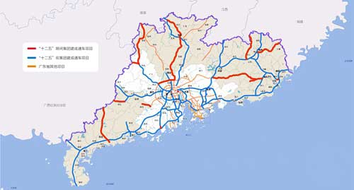 根據(jù)《廣東省綜合交通運輸體系“十二五”規(guī)劃》,將加快國家高速公路粵境段、高速公路出省通道和珠江口東西兩岸跨江通道建設(shè),構(gòu)建布局合理、通達便利和具有較高服務(wù)水平的高速公路網(wǎng)絡(luò)。省委、省政府確立高速公路建設(shè)2大目標:“十二五”期間,全省將實現(xiàn)縣縣通高速公路,全省高速公路通車里程達6500公里。