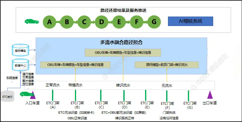 摘要:隨著省界收費站全部取消,全國實現(xiàn)了“收費一張網(wǎng)”,極大地提升了高速公路路網(wǎng)通行效率,然而在經(jīng)濟利益的驅(qū)使下,偷逃通行費行為層出不窮并呈現(xiàn)出多樣化、隱蔽化特點。傳統(tǒng)稽核方法存在依賴人工、遏制難度大、運營服務能力不足等問題,無法滿足新收費模式下的稽核需求。本文基于大數(shù)據(jù)、邊緣計算、AI算法等技術,對AI稽核系統(tǒng)平臺建設進行了探討,提出了多流水融合路徑還原、邊緣計算實時稽查、多維AI稽核引擎等方法,并建立了多種偷逃費稽核模型。結果表明,AI稽核系統(tǒng)可有效核查多種偷逃費行為,模型準確率高,能夠滿足核查需求。